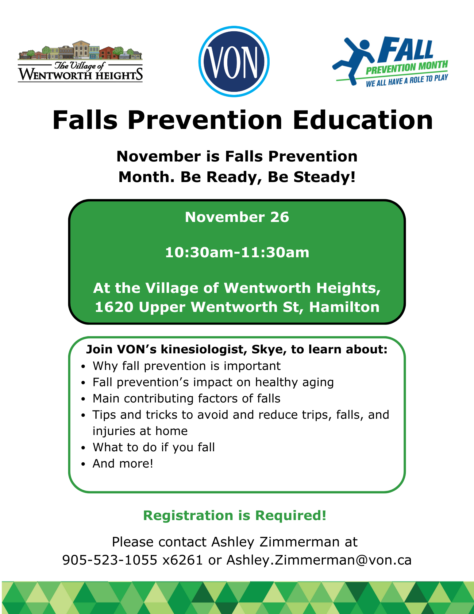 To bring awareness to Fall Prevention month this November, VON SMART is hosting a fall prevention education session for caregivers! We’ll discuss why fall prevention is importance and its impact on healthy aging. We will review the main contributing factors to increased risk of falls and learn about ways we can reduce risks. Lastly, additional resources and program information will be provided for future reference!