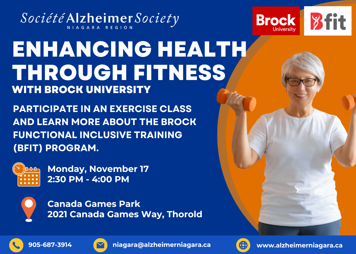 Join us each month as we engage in activities of self-care to promote positive brain health and meaningful connections. We welcome anyone who is looking to relax and have fun! Participate in an Join us each month as we engage in activities of self-care to promote positive brain health and meaningful connections. We welcome anyone who is looking to relax and have fun! Participate in an exercise class and learn more about the Brock Functional Inclusive Training (Bfit) program through Brock University which aims to improve overall health and enhance quality of life through exercise and activity. No experience needed and all abilities are welcome. Free and accessible parking available.